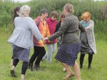 When the dancers have braided the length of their dance braid, the music changes to a dance rhythm and the celebration begins! It has been a long standing, buried dream, which I am unearthing with is work, to bring a sense of celebration, real celebration with joy and dance and simple good food into my work.