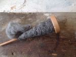 As my first learning pieces i made two hats with Islandic wool, thick and with very little twist . in this way of working every new thread has to be joined with the old one through felting the ends together.