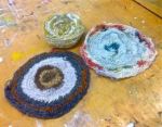 At this point I was thinking of using this technique for my main piece, using my hand spun yarn. Working in the round seemed very fitting for a comfort blanket for the Earth.